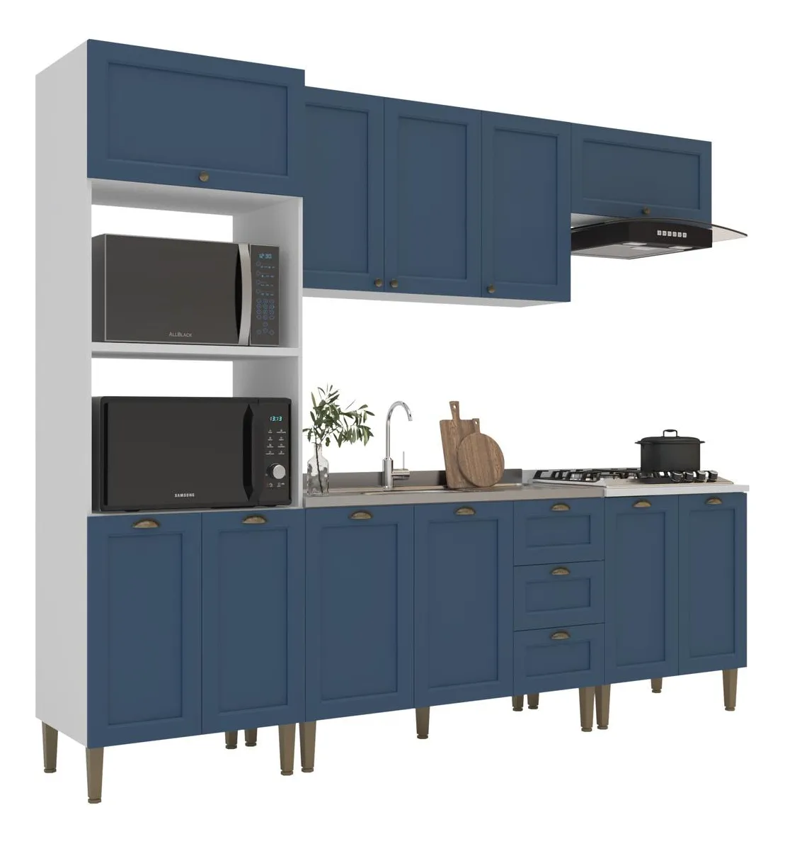 – Espaços dedicados para colocação de forno e micro-ondas de até 15kg (eletros não inclusos).